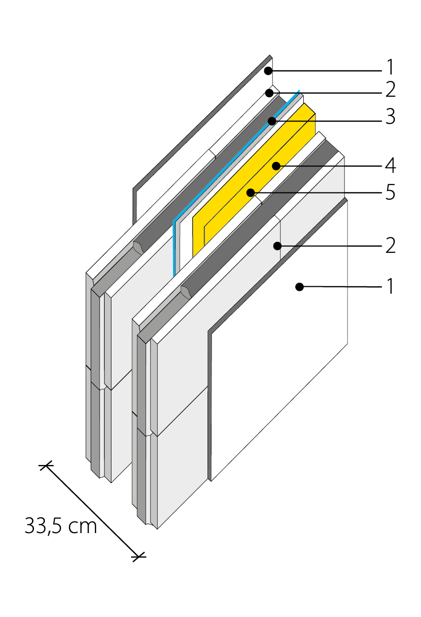 Spessore totale della parete =  33,5 cm.