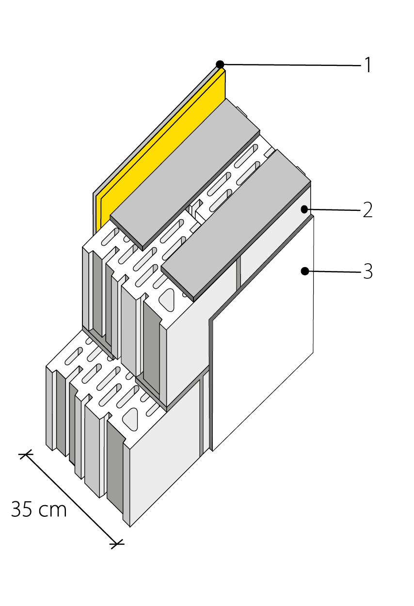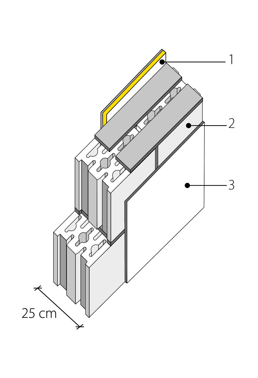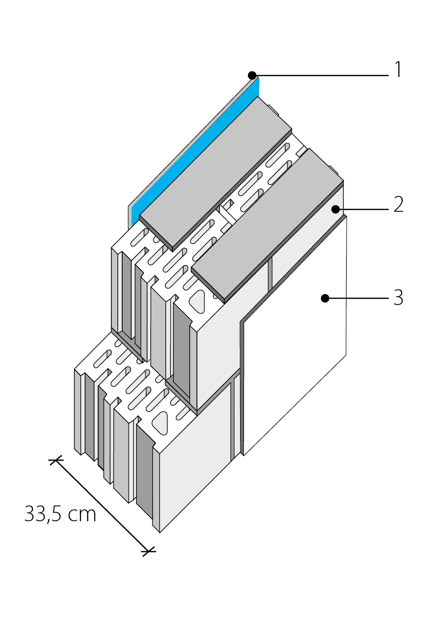- Intonaco tradizionale (sp. 15 mm).
